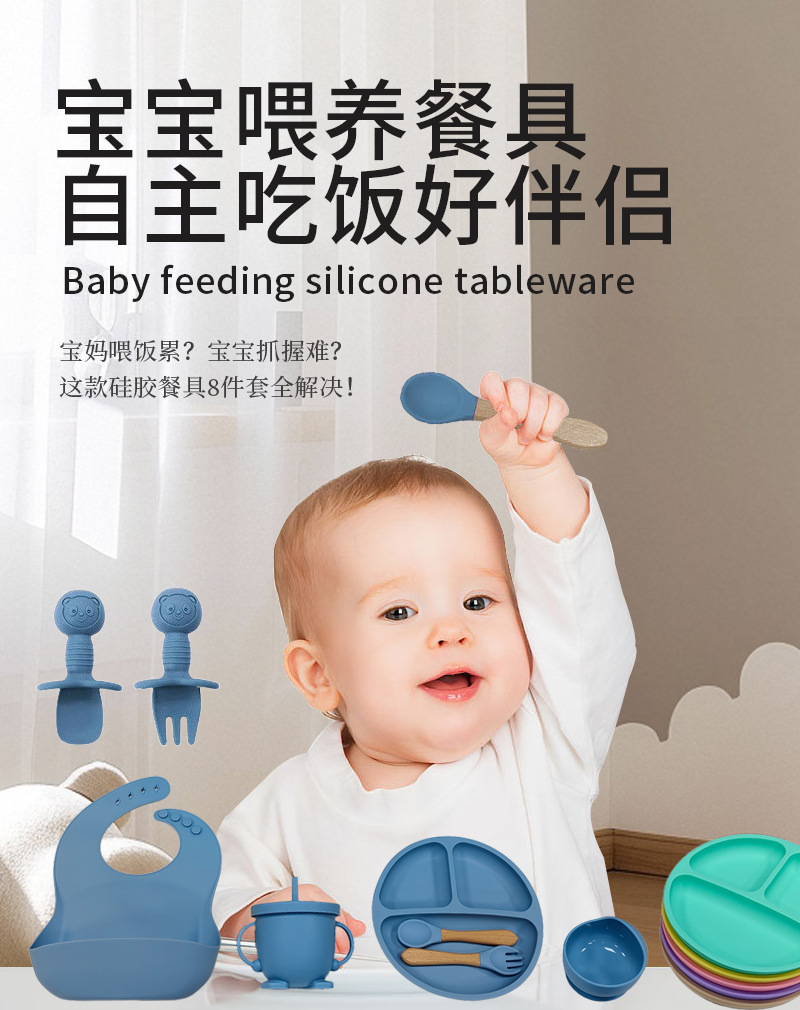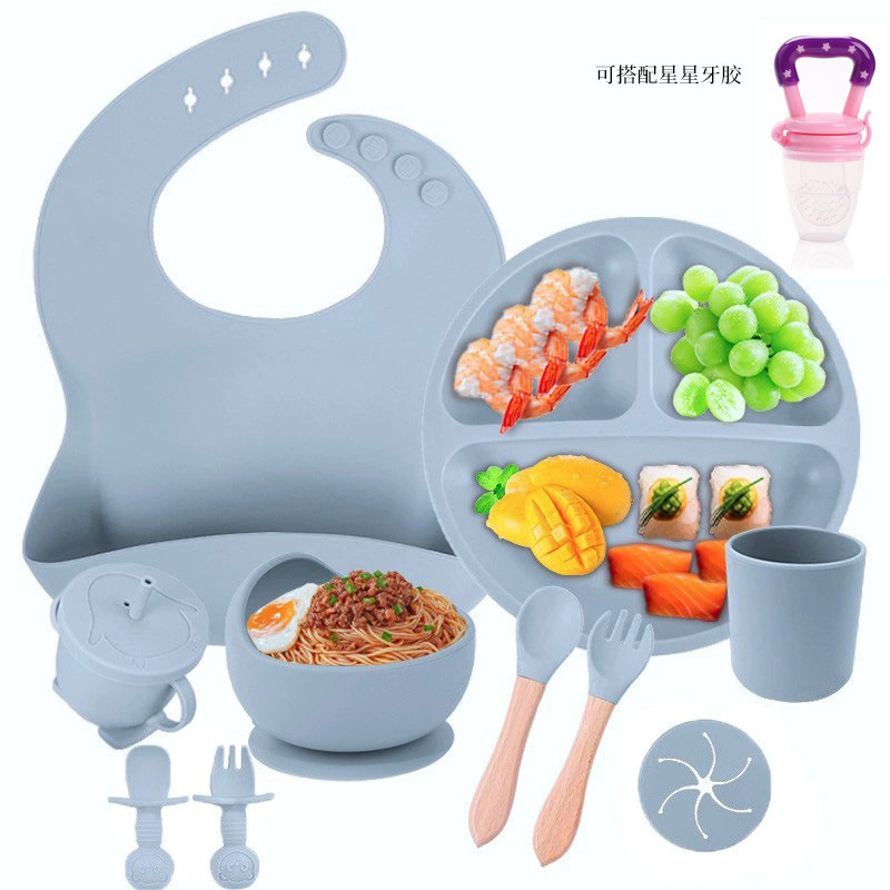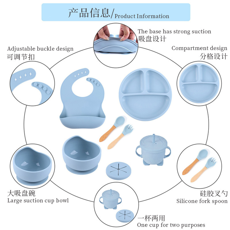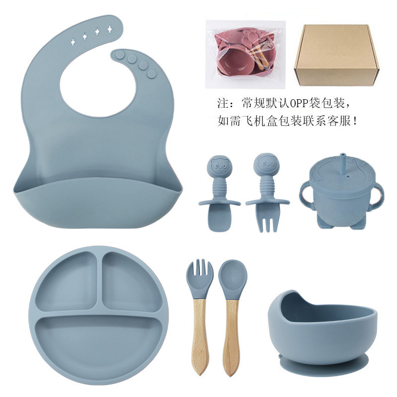 gray blue-pure silicone eight-piece set