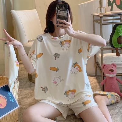 pajamas women's summer short sleeve cute cartoon student cartoon thin loose summer girl strawberry homewear suit