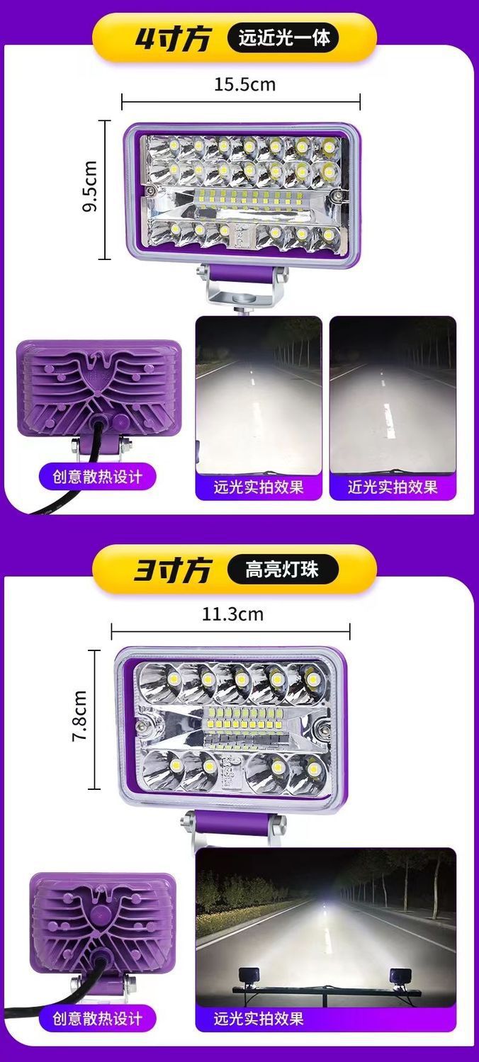 4-inch square upgraded model, wide field of view, extra-bright [yellow-white light, purple housing]