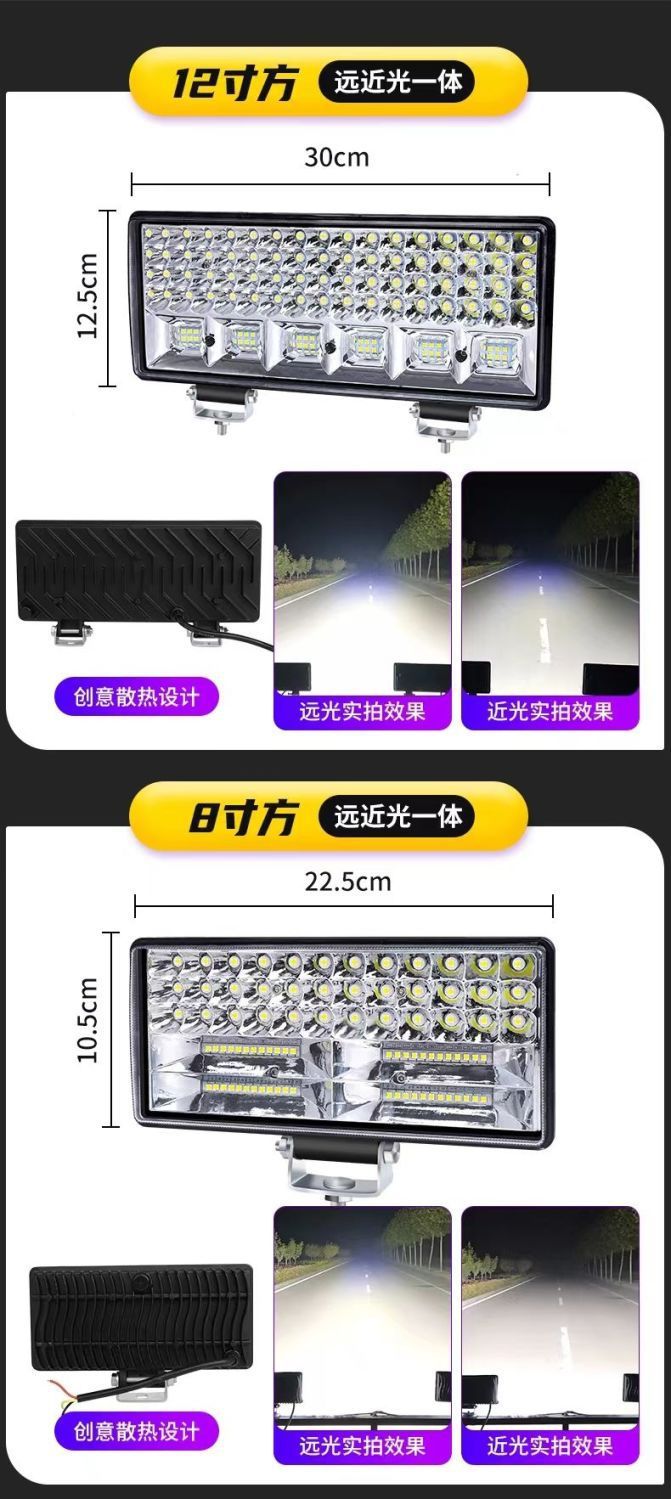 12-inch square wide-beam high/low beam [white light, black housing]