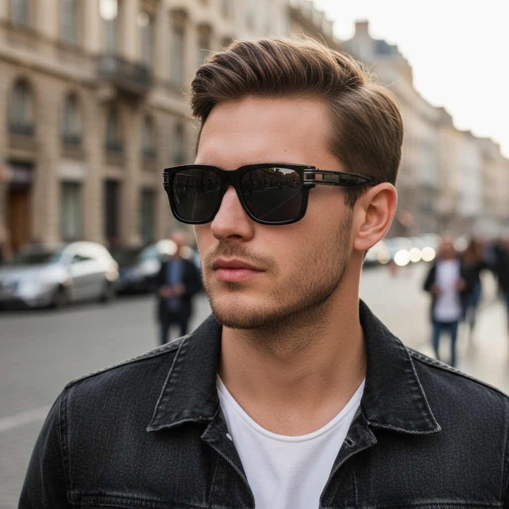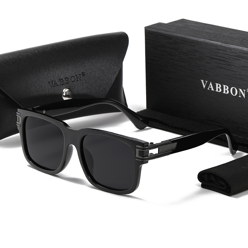 bright black frame, gray lenses