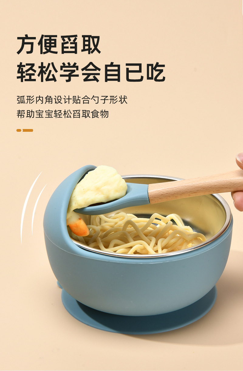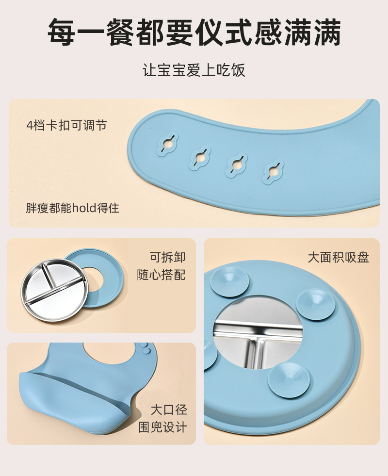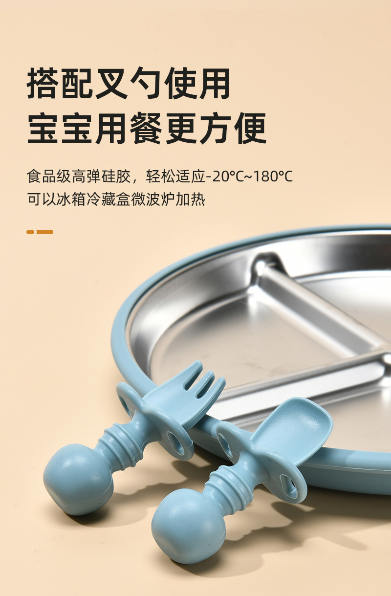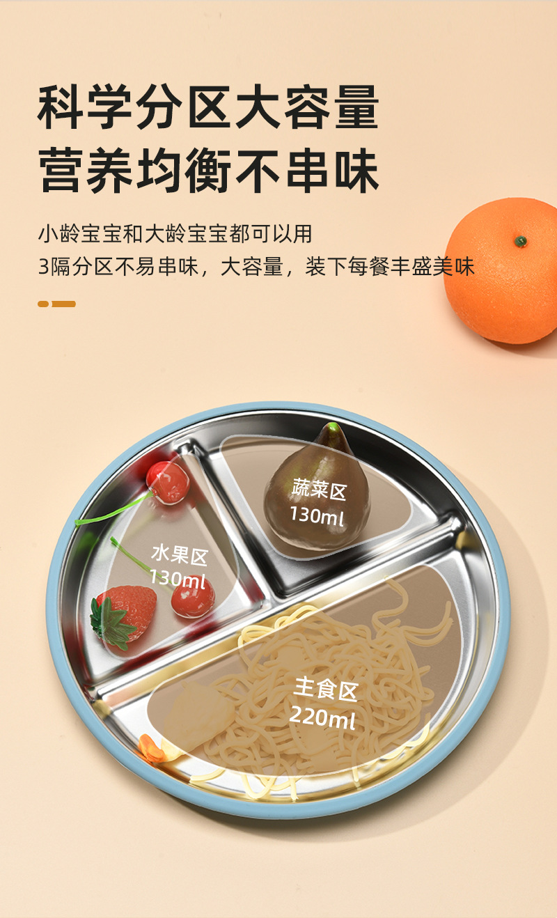 Function: The 304 stainless steel dinner plate is equipped with a silicone suction cup cover, which not only prevents spills but also insulates heat. It can be microwave-safe and refrigerated, meeting the needs of different usage scenarios. The fresh and simple color combination is deeply favored by consumers!