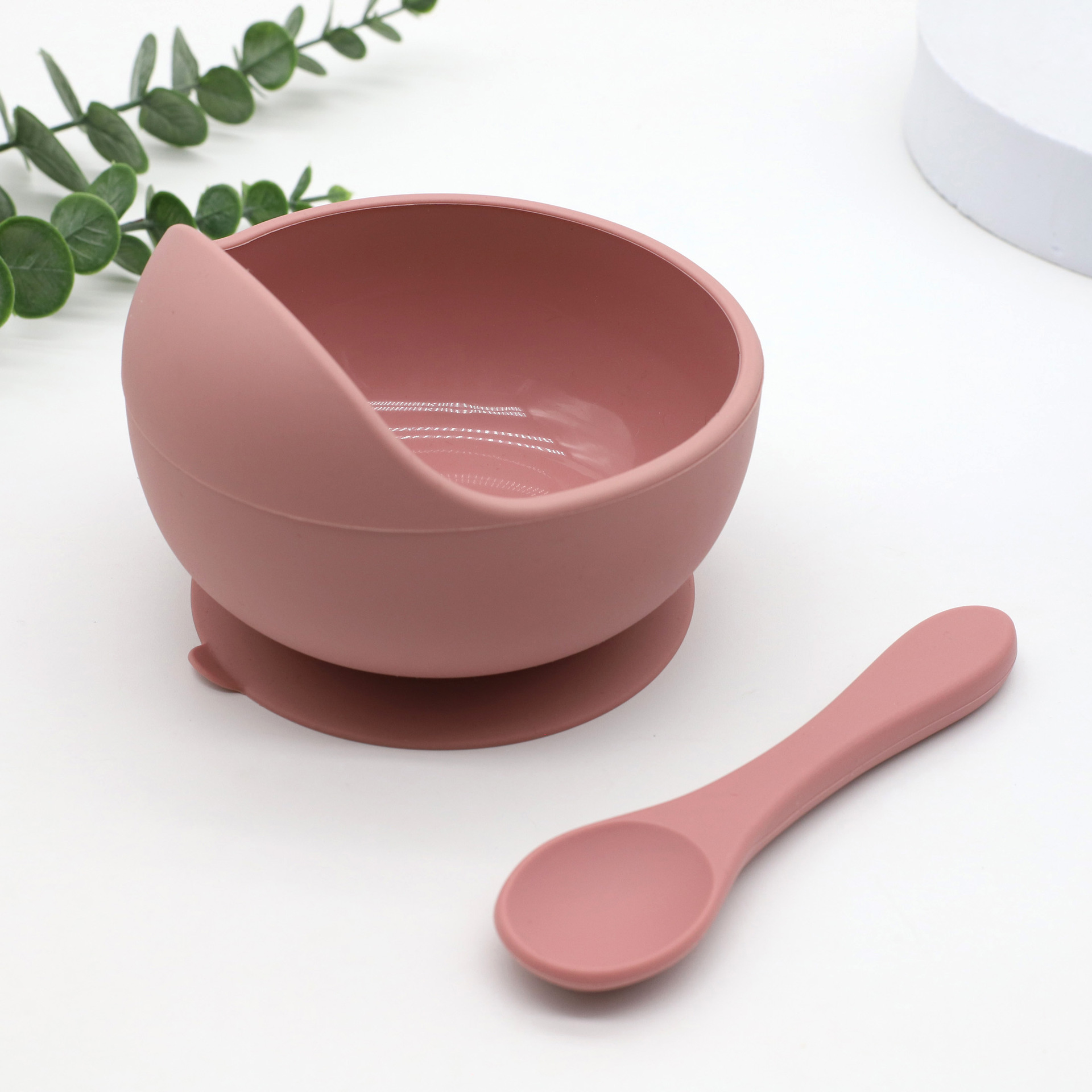 dark red bowl + spoon