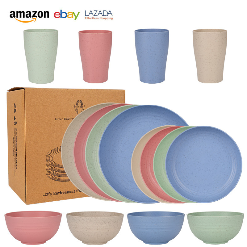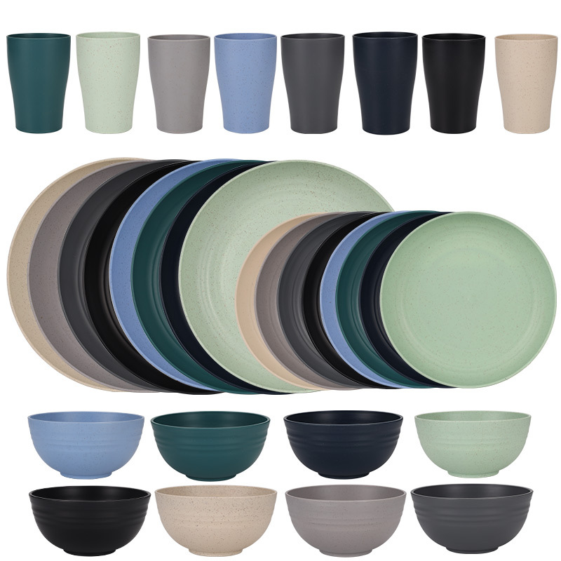 mixed colors (nordic 4 colors) 16-piece set: 23 plates, 20 bowls, and small waist cups
