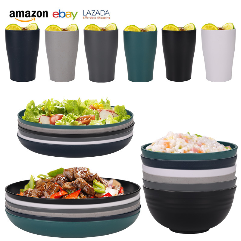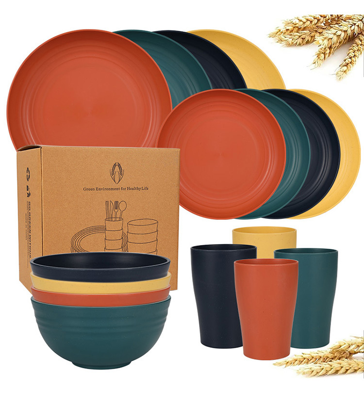 mixed colors (rice noodle yellow, orange, dark green, dark blue) 24-piece set: 23 plates, 20 plate and bowl small-waisted cups.