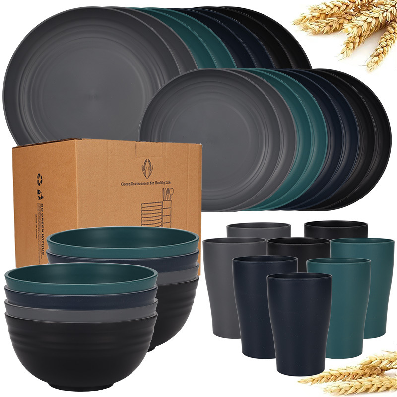 black (24-piece set, 23 plates, 20 plate and bowl small-waisted cups)