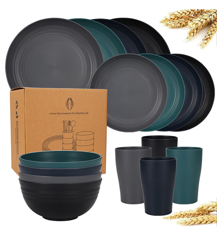 mixed colors (black, white, dark gray, light gray, dark green, dark blue) 24-piece set: 23 plates, 20 plate and bowl, petite waist cup.