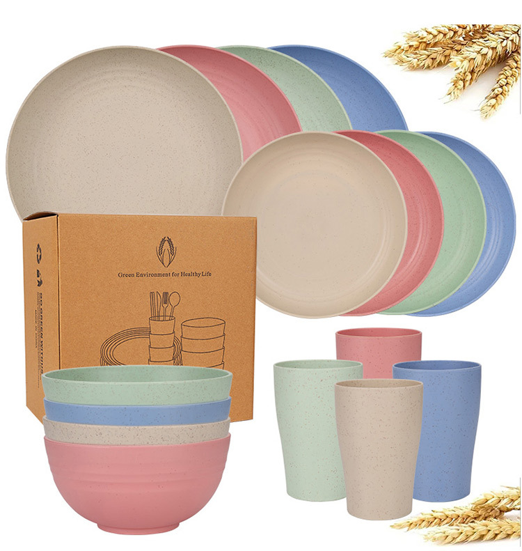 mixed colors (rice noodle light green light blue yellow orange) 24-piece set 23 plate and bowl small-waist cup