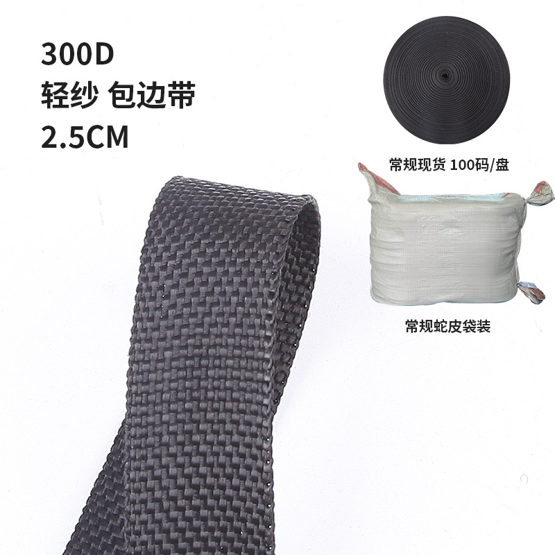 black 2.5cm 300d light yarn boud edage belt, order in multiples of 90