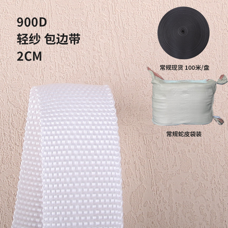white 2cm 900d light yarn boud edage belt, order in multiples of 100