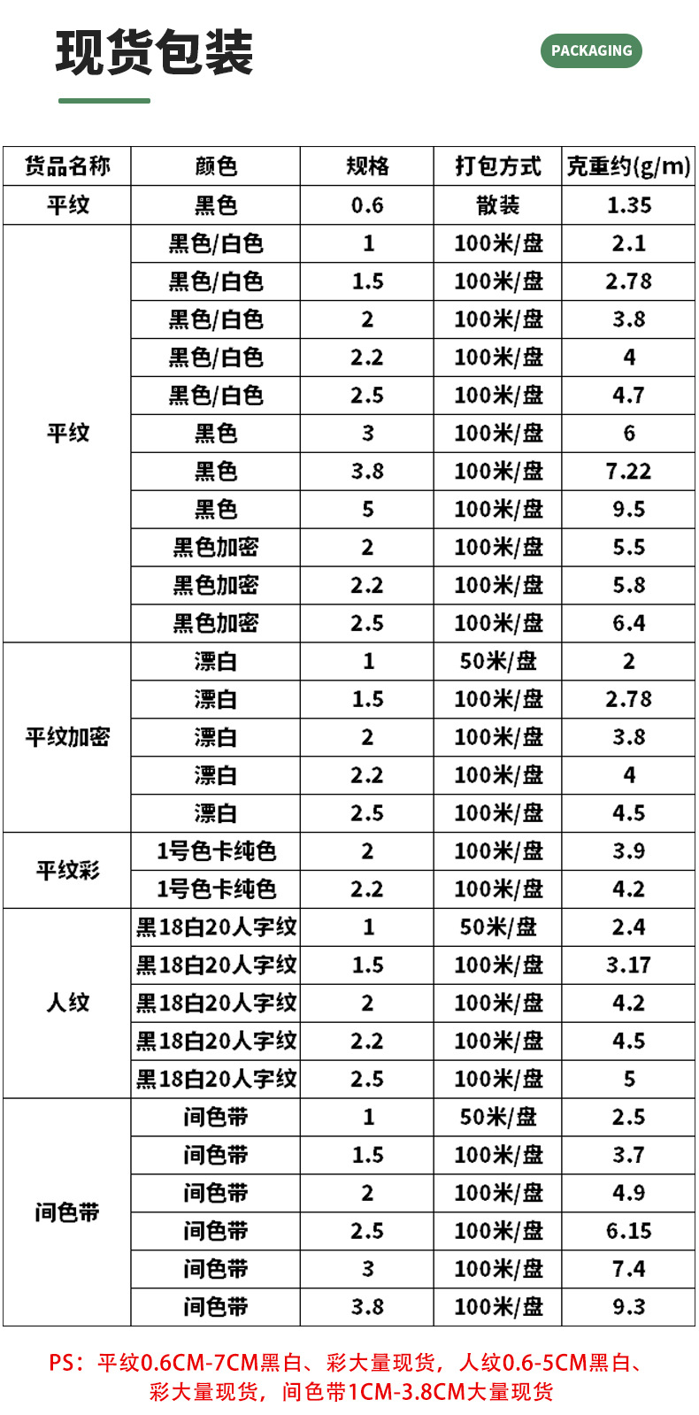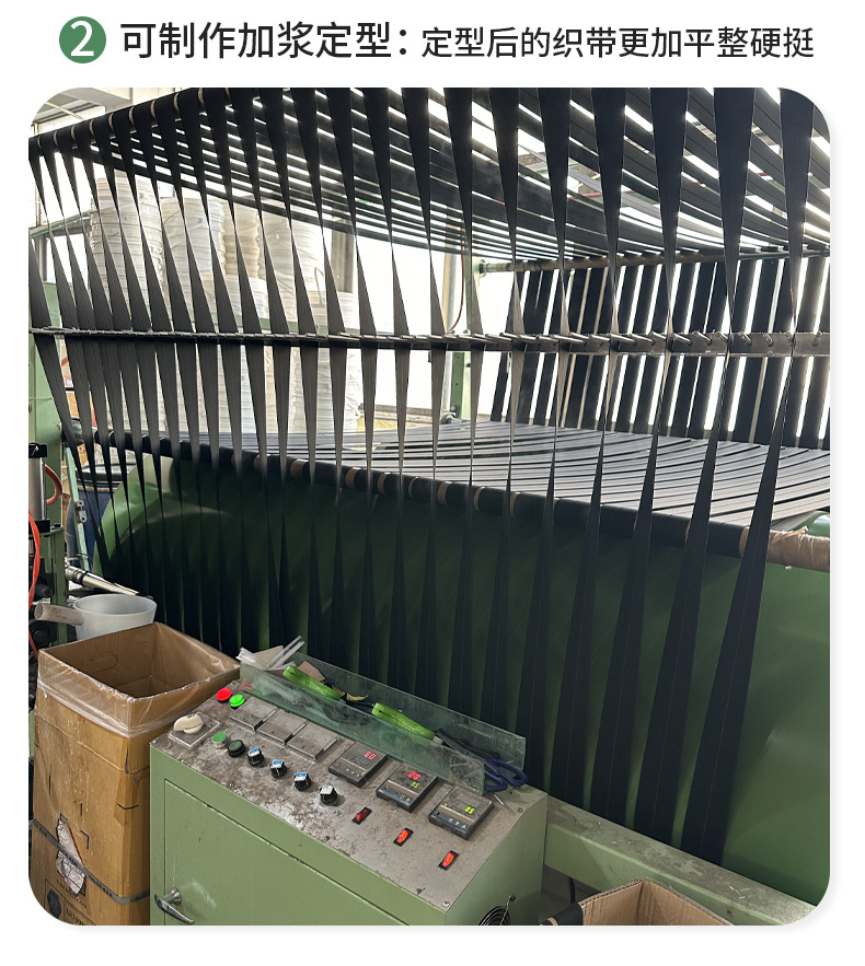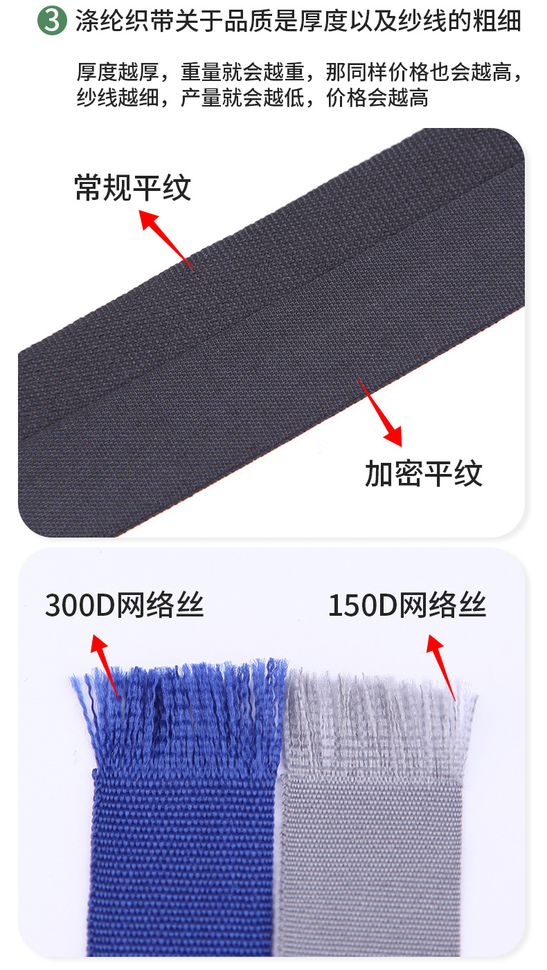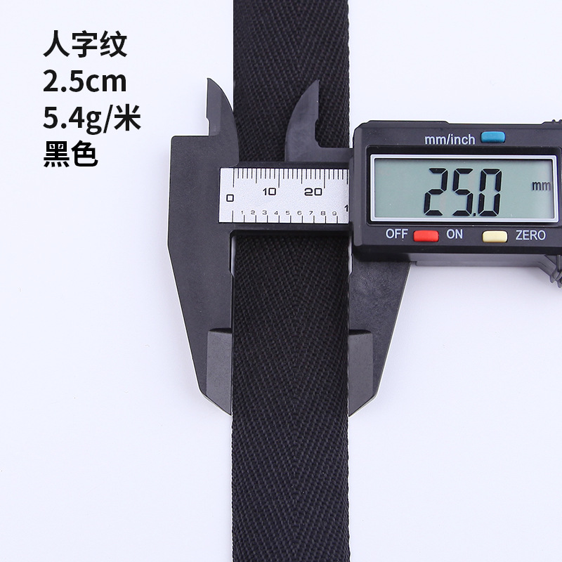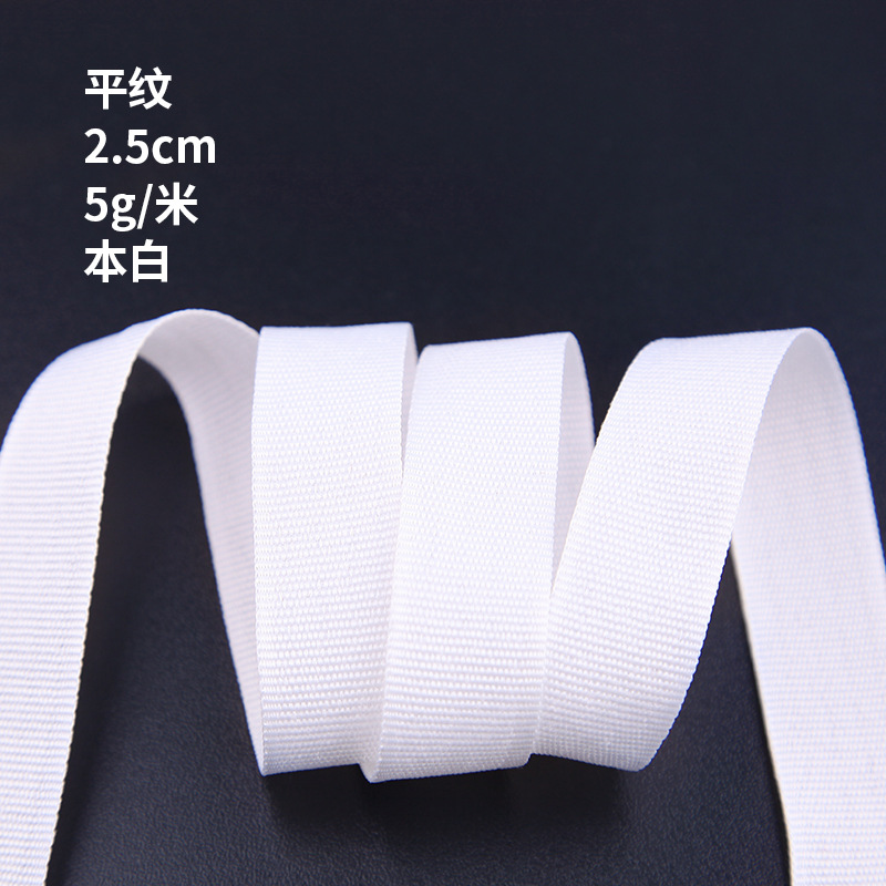 off-white plain weave, 300d * 2.0cm. please order in multiples of 100 meters.