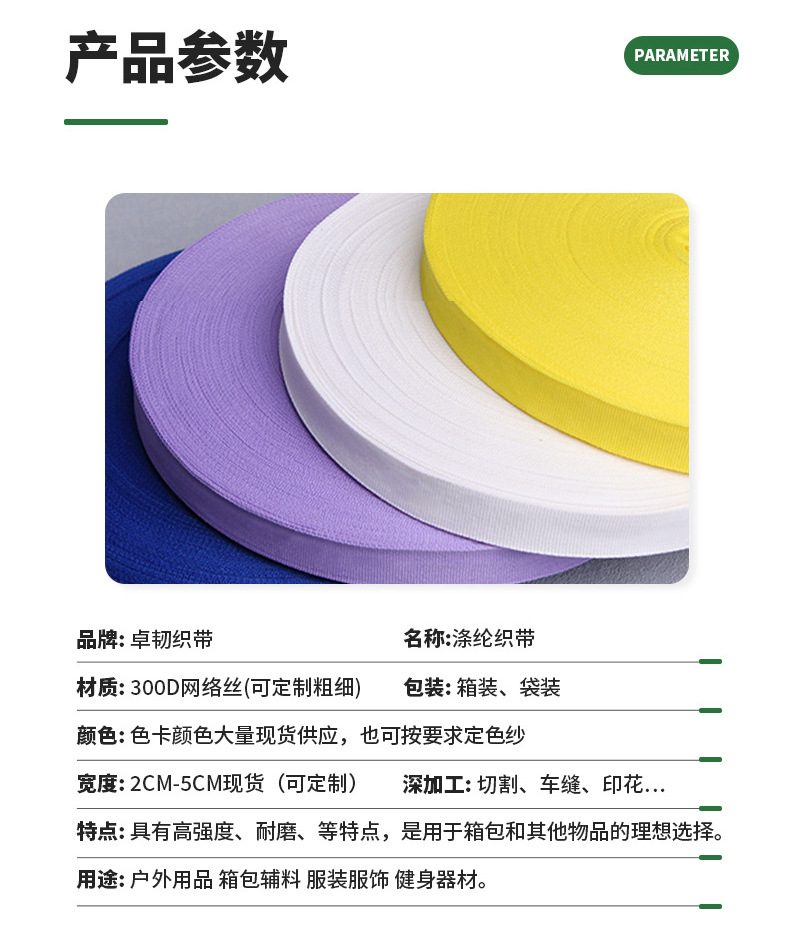 #36 sapphire blue plain weave 300d * 2cm. please order in multiples of 100.