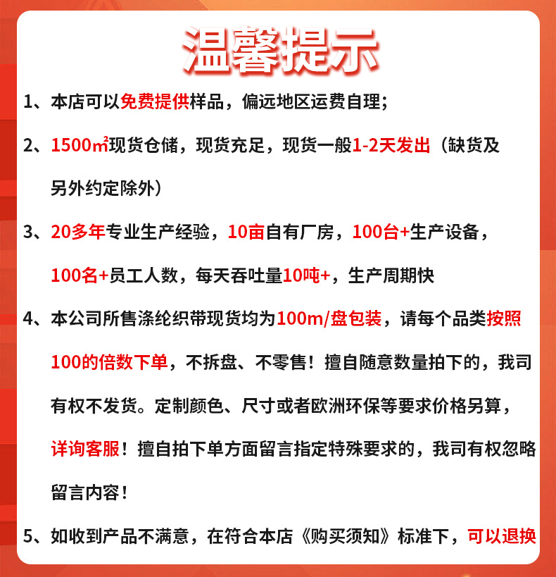 #35 bright red plain weave 300d*2cm. please order in multiples of 100.