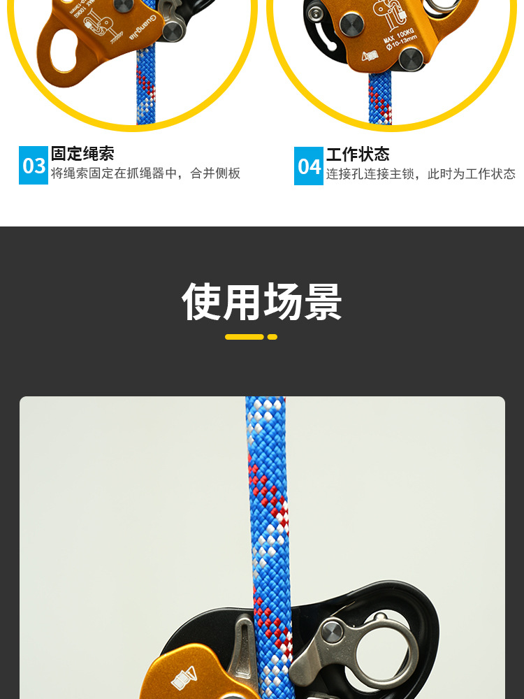 emergency rope clamp-gold color
