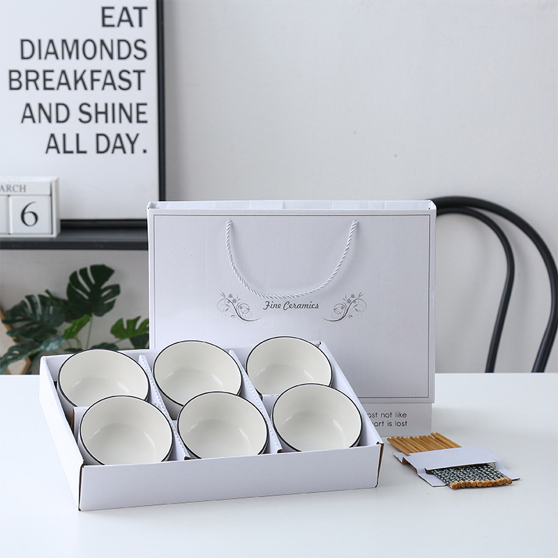 10 sets of free shipping with color box 6 bowls 6 spoons +1 plate