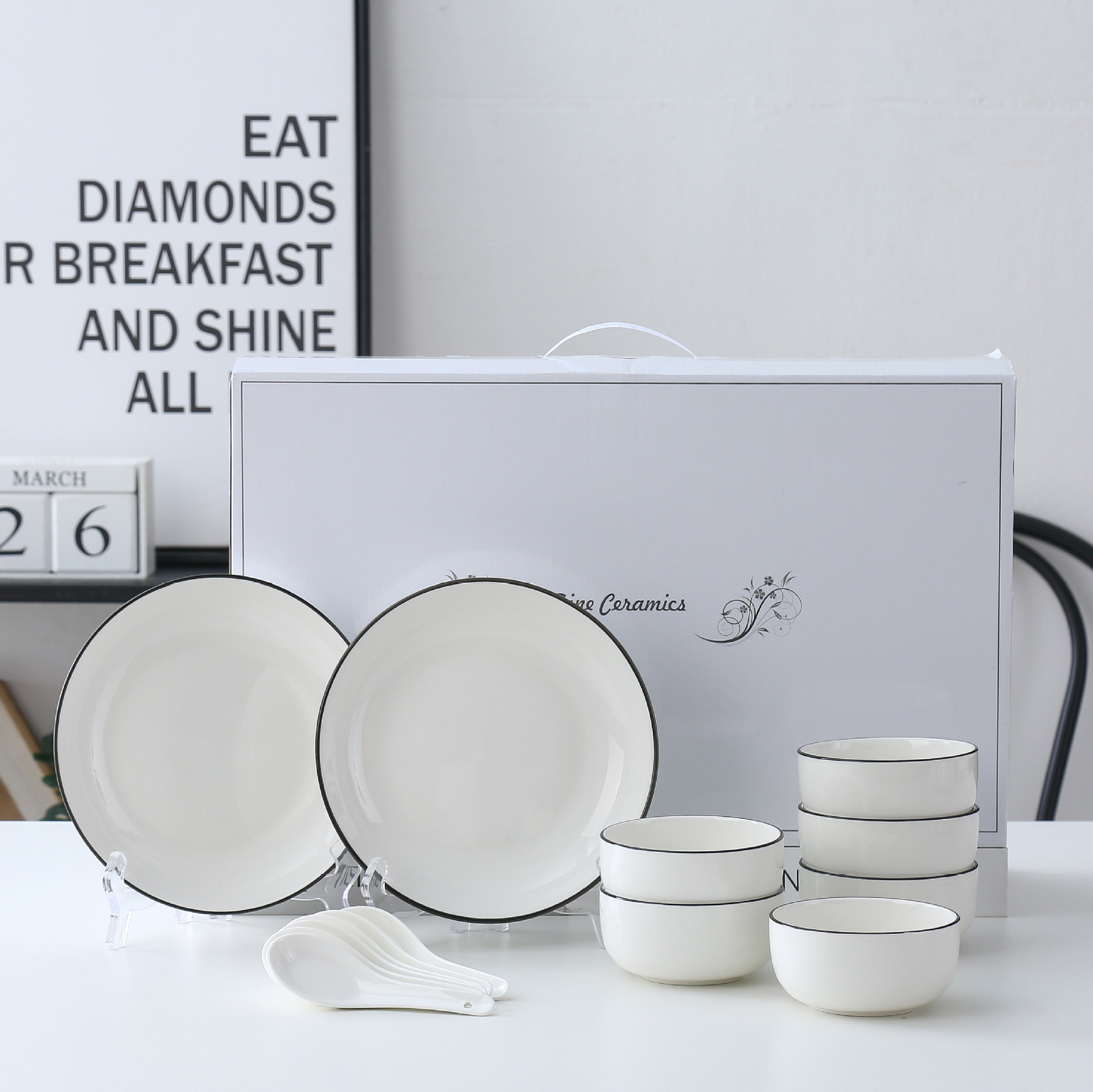 10 sets of free shipping with color box 6 bowls 6 spoons +4 plates