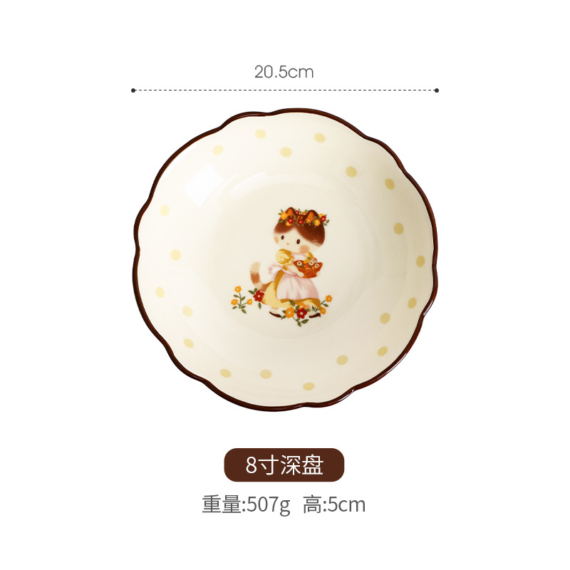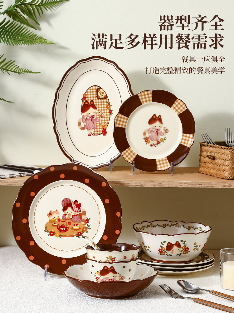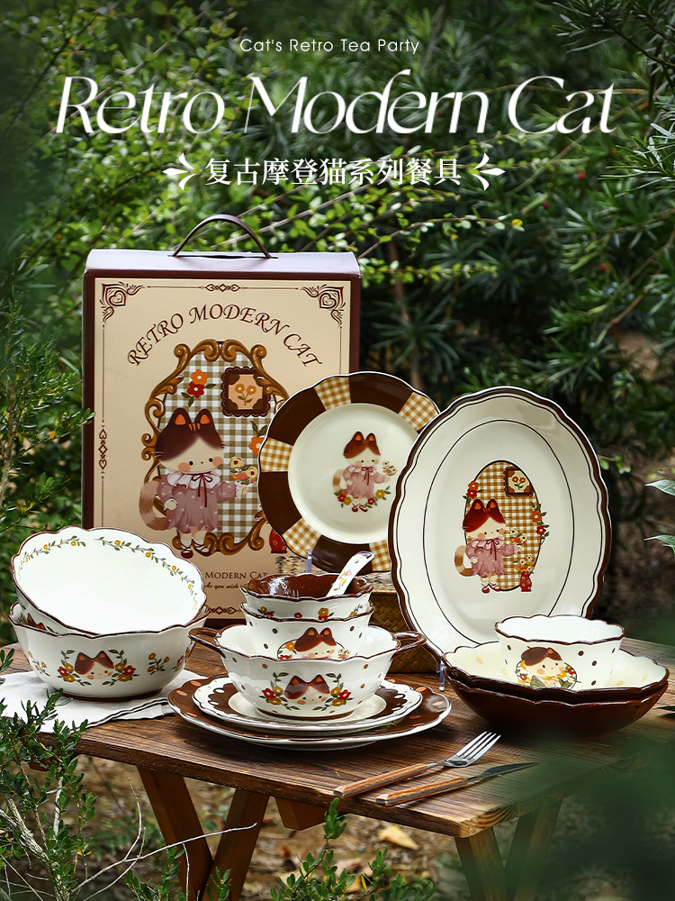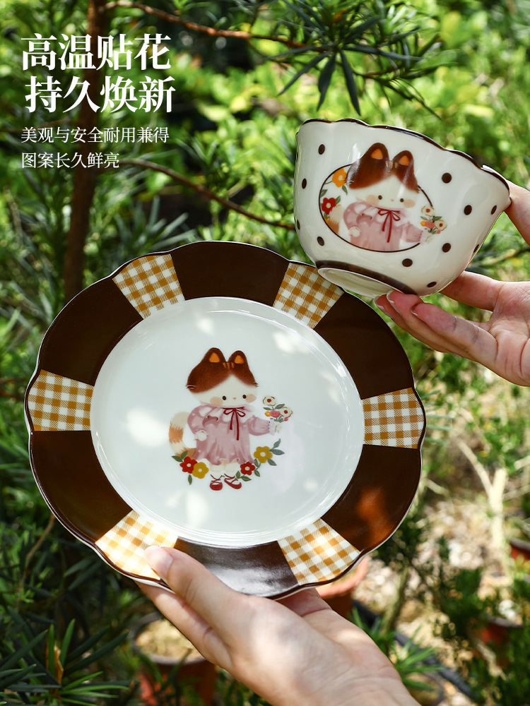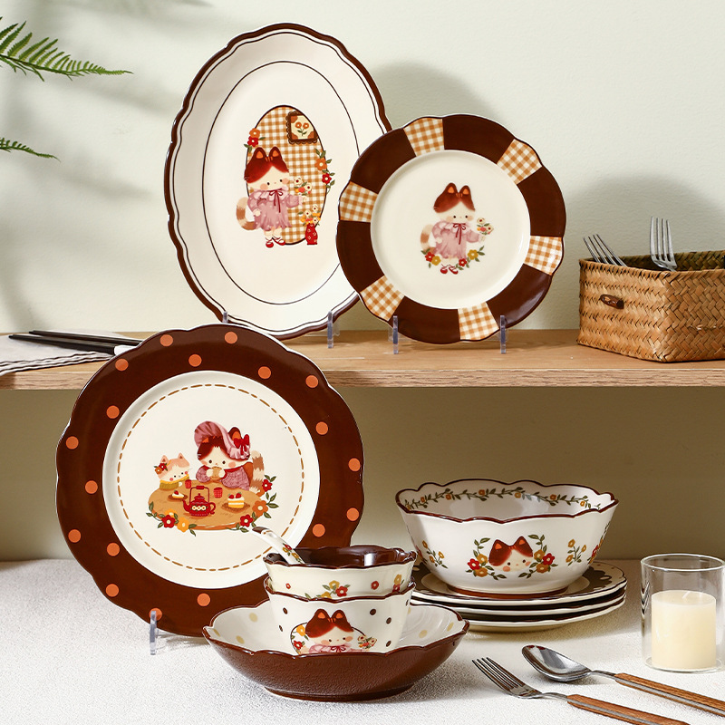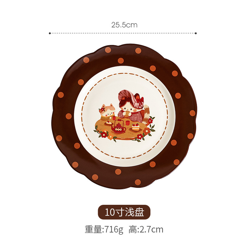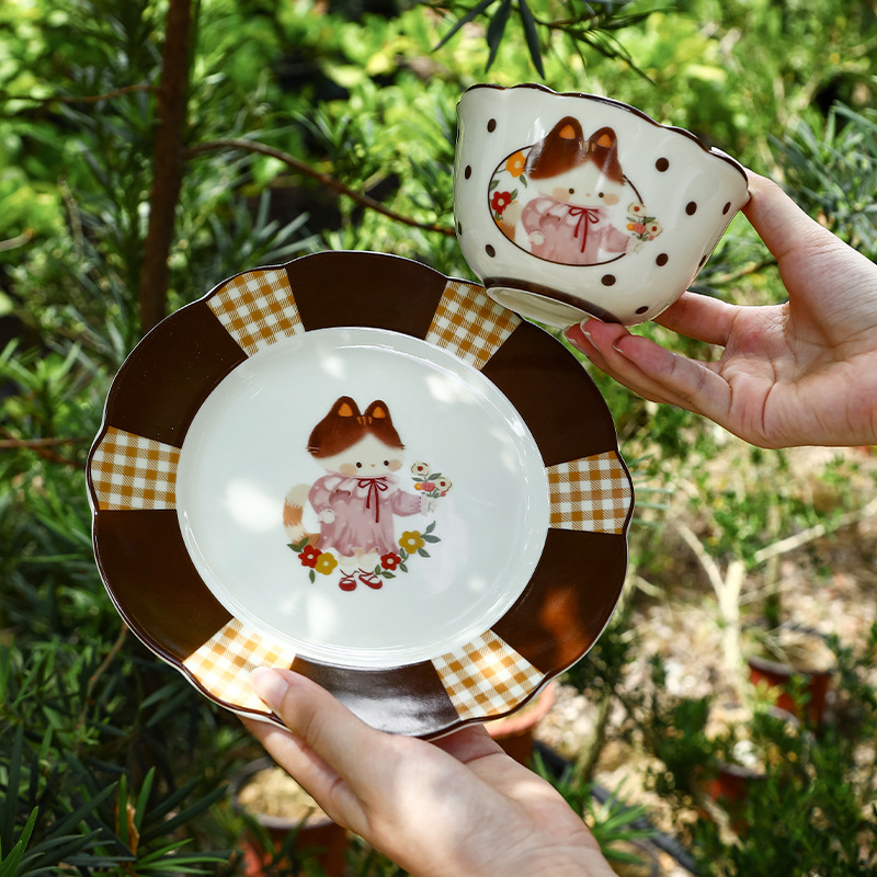 retro cat 8-inch shallow plate plaid edge