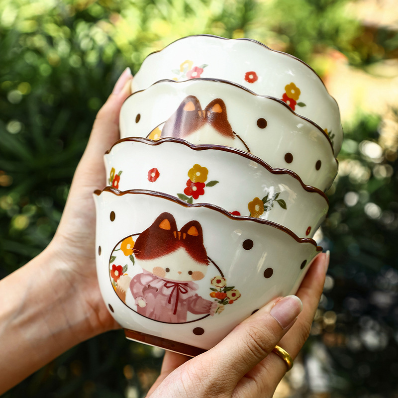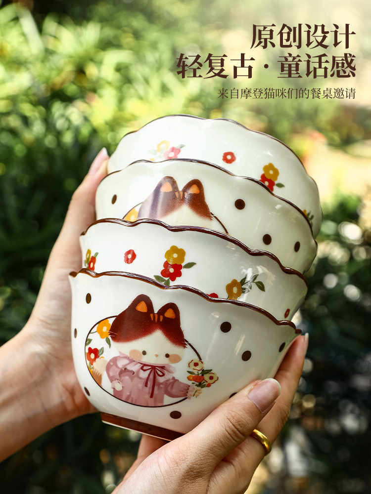 retro cat 4.5-inch rice bowl little flower