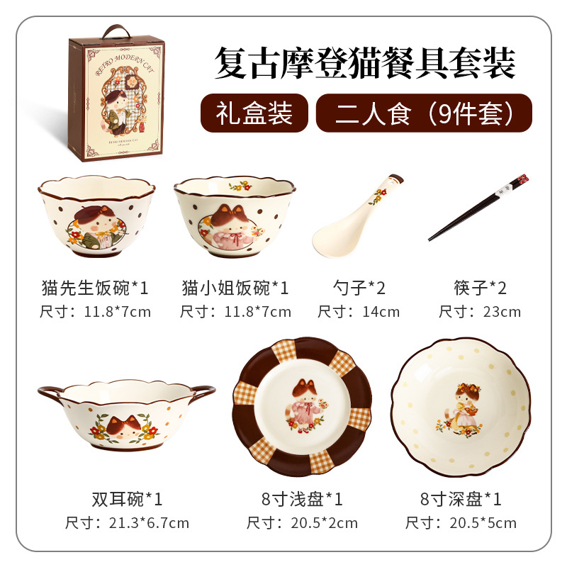 retro cat double-ear bowl