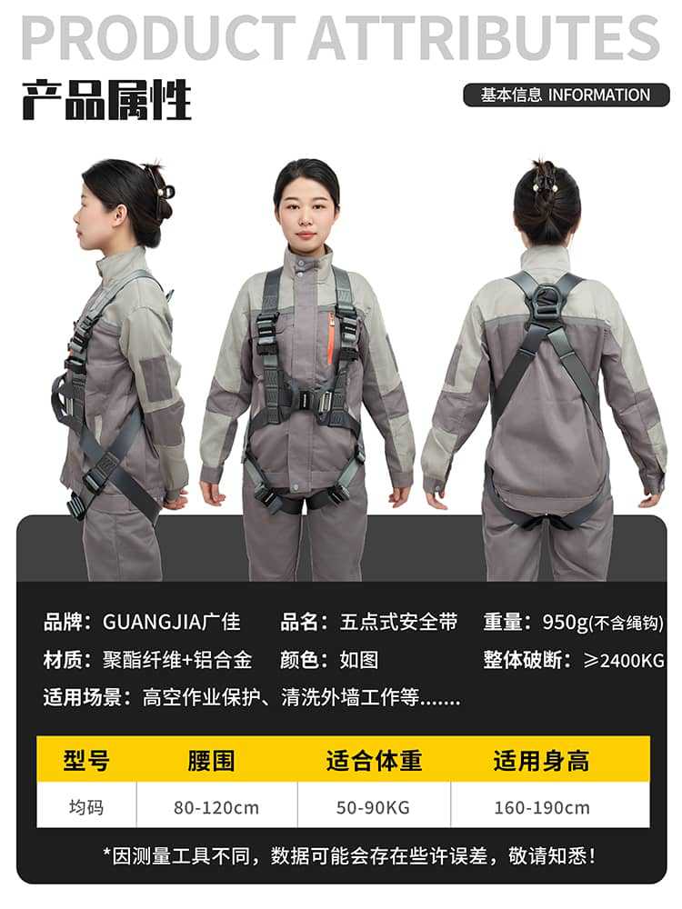 ultra-light harness + aluminum alloy shock-absorbing double large hooks, 2 meters