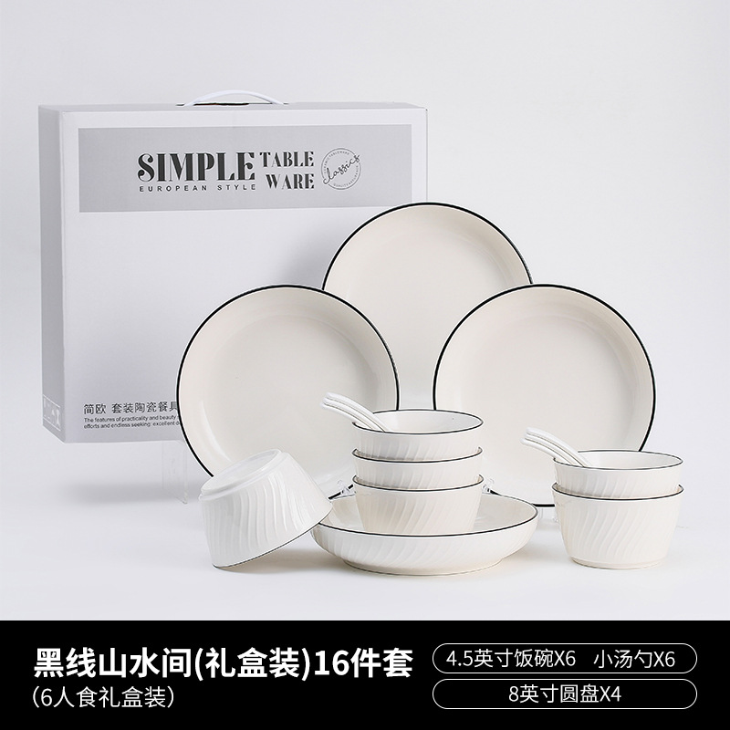 16 pieces (6 bowls, 6 spoons, 4 plates) per set; 10 sets per box.