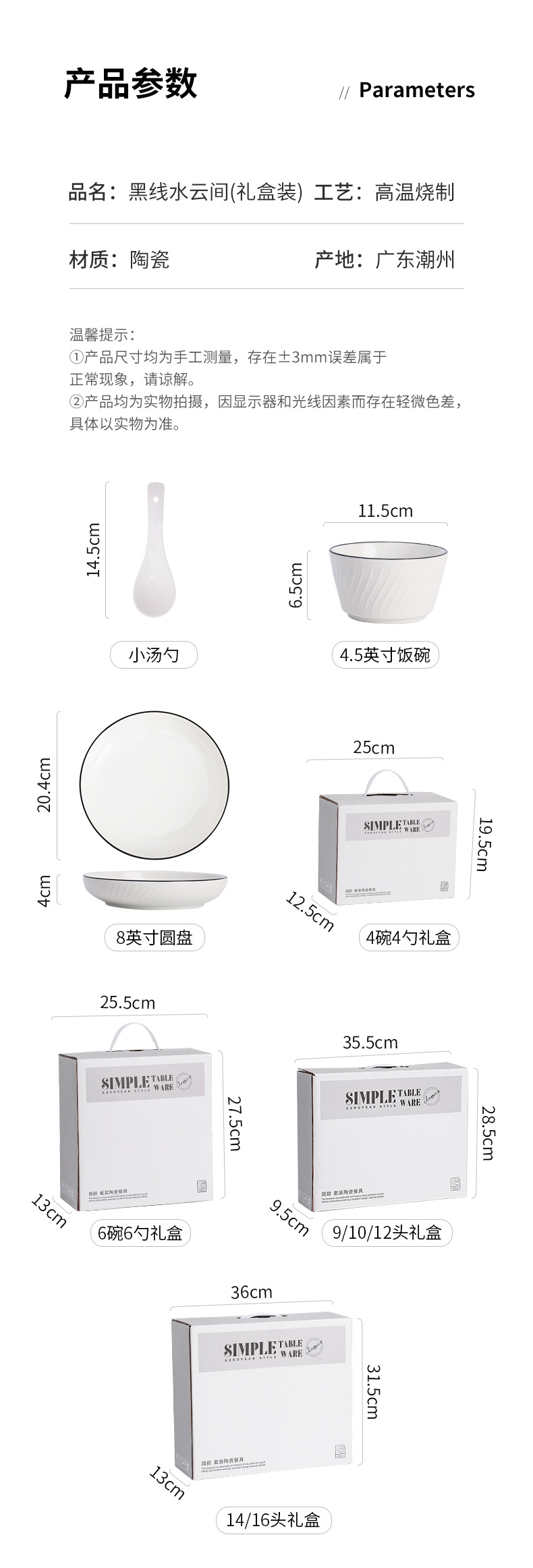 14 heads (6 bowls, 6 spoons, 2 plates) 10 sets per box