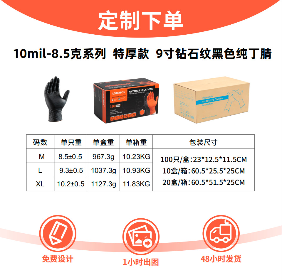chinese orange pure nitrile diamond pattern boutique standard * m