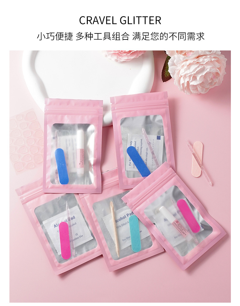 exquisite 5-piece tool kit with 3g glue (pink bag)