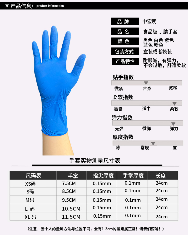 [pure nitrile] 9-inch blue thickened s/piece