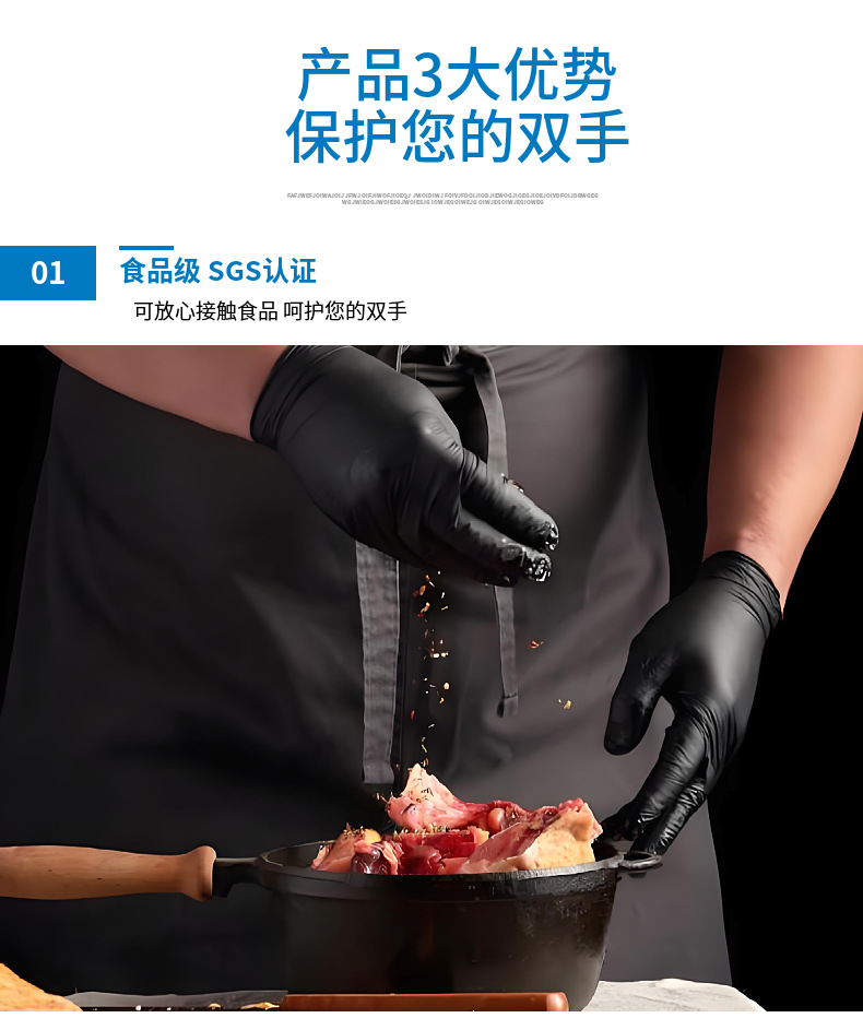 [pure nitrile] 9-inch black thickened l/piece