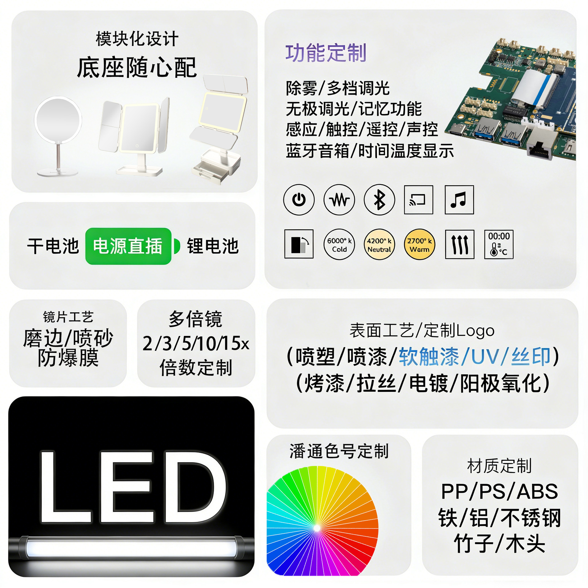 color: [height adjustable without light] ultra-clear non-deformation mirror, [white