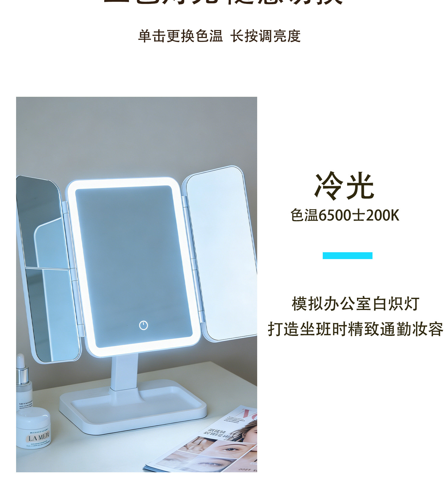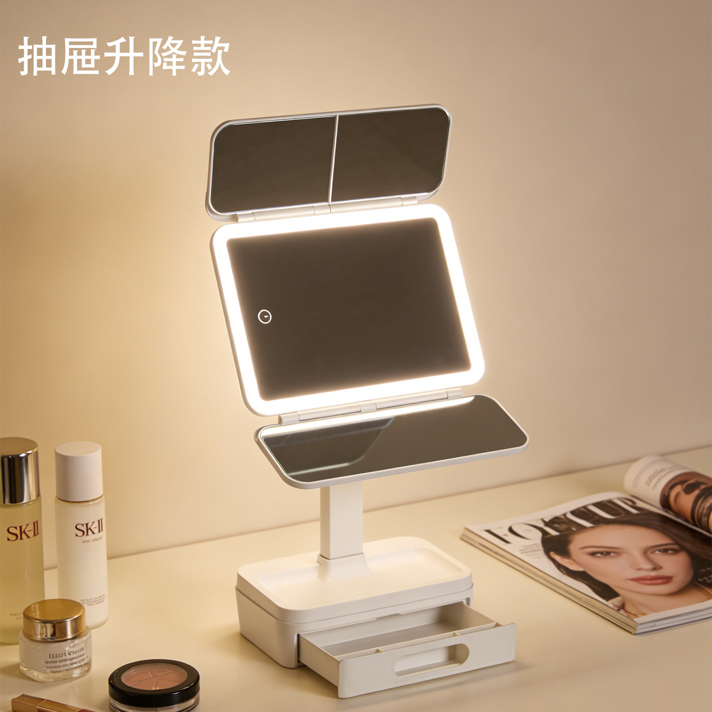 [height adjustable without light] ultra-clear non-deformation mirror, [white