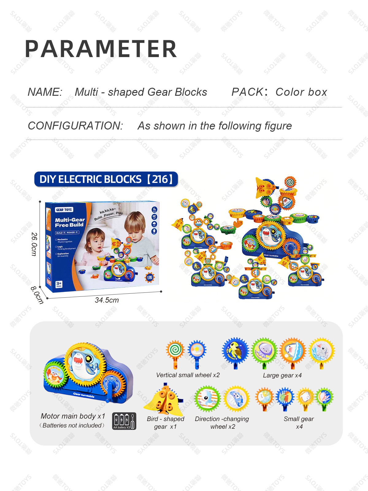diy gear building blocks – ocean theme (english portable gift box)