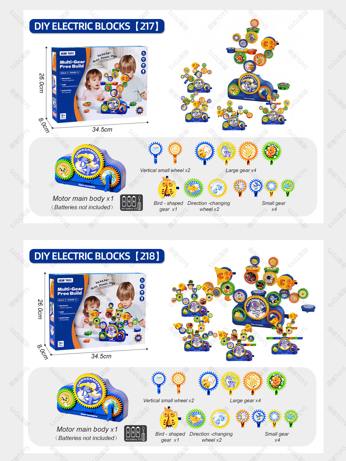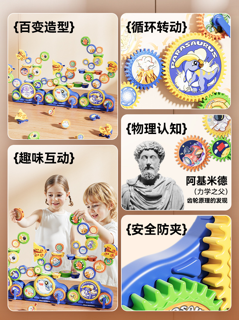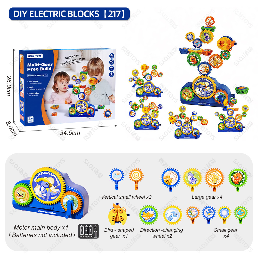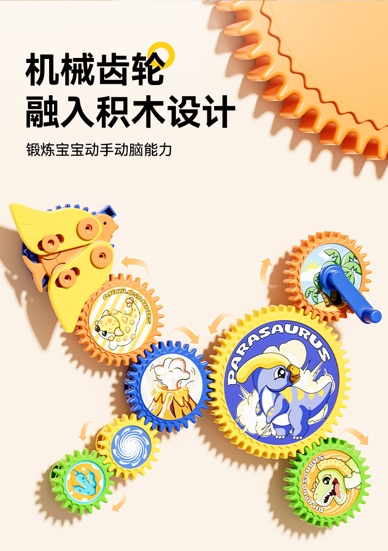diy gear building blocks – dinosaur edition (english portable gift box)