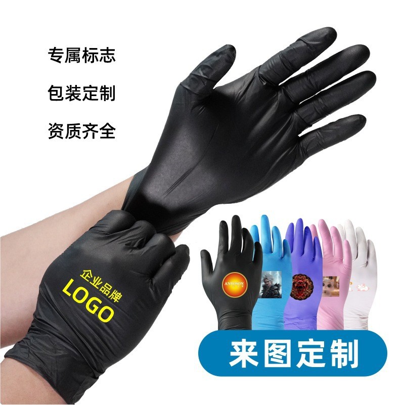 black pure nitrile custom logo thickened * l
