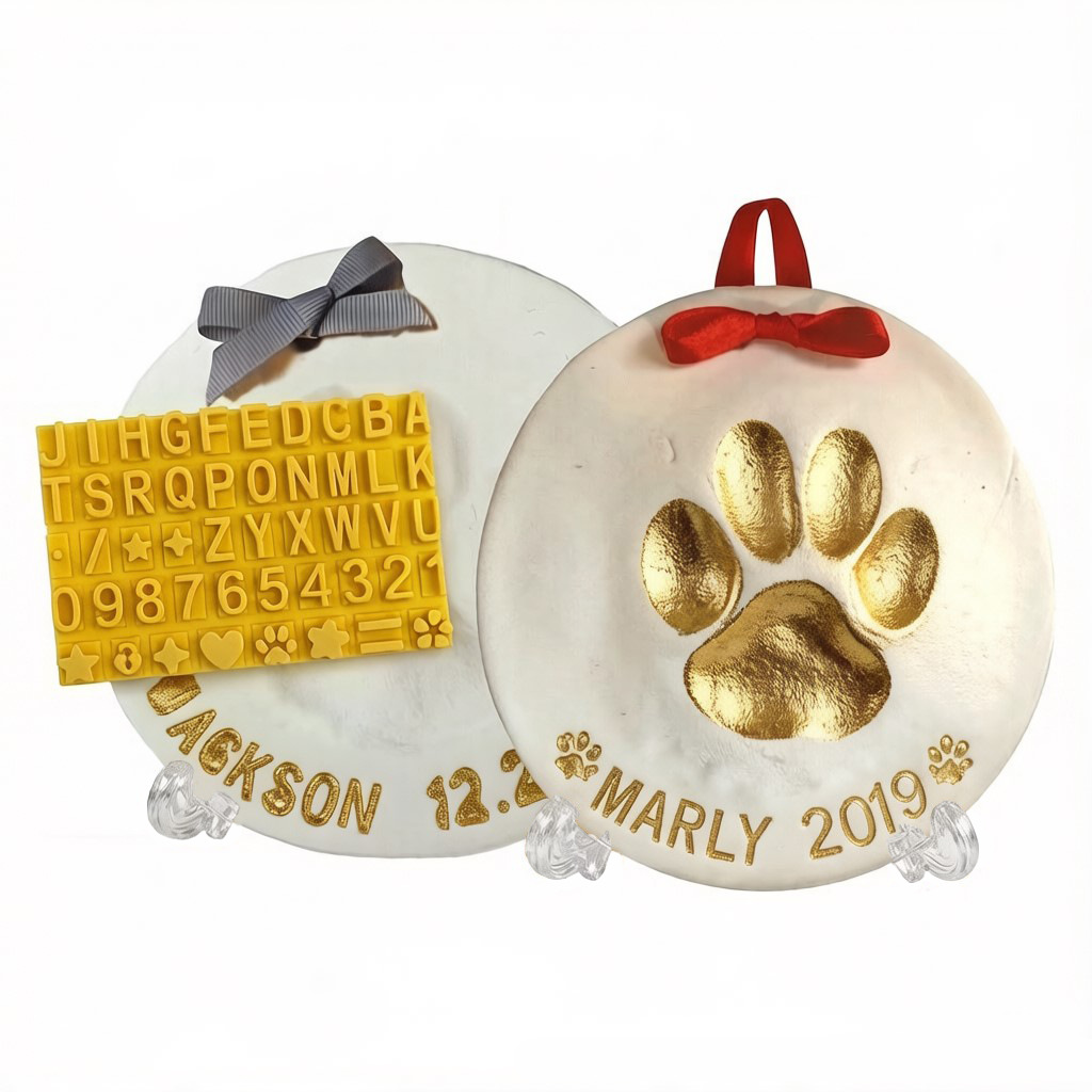white (2 packs of inkpad + free stand + gold paint + brush + mold box + letter molds + ribbon)