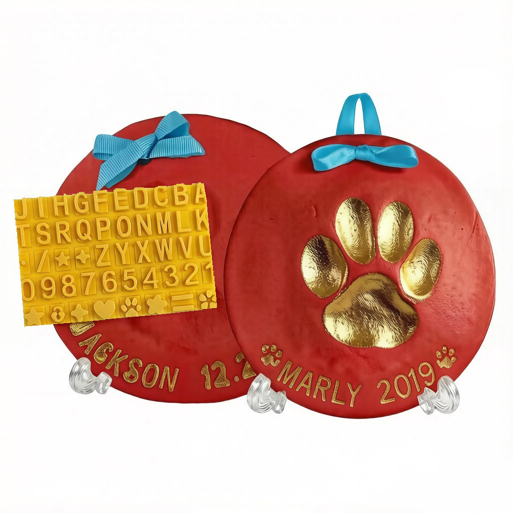 red (2 packs of inkpad + free stand + gold paint + brush + mold box + letter molds + ribbon)