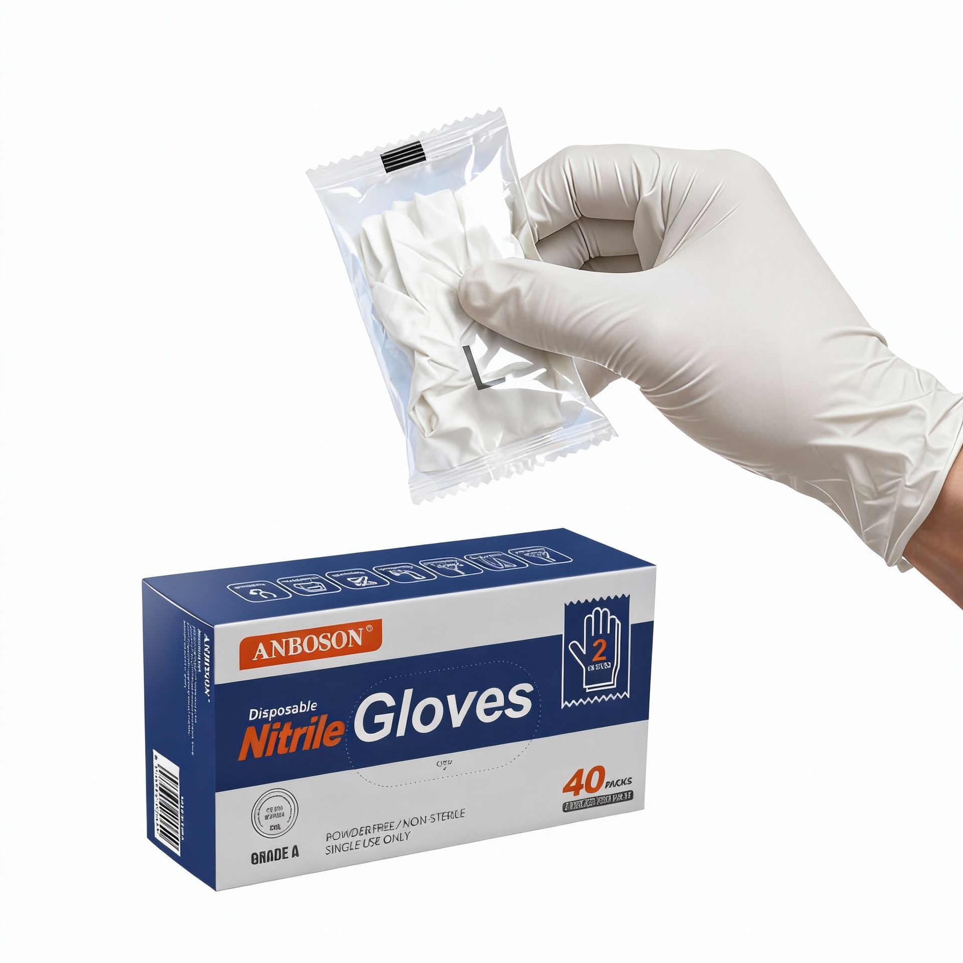 white pure nitrile thickened brand english cpp bag 2 pack (40 packs/box) * l