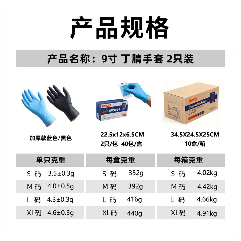 blue pure nitrile thickened brand english cpp bag 2 pack (40 packs/box) * s