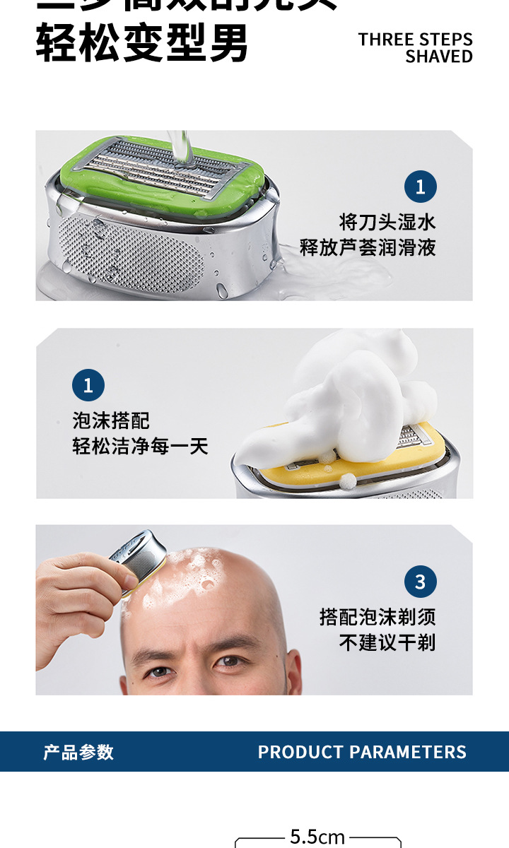 [ice crystal green-magic tool for shaved heads] 1 piece +1 replacement blade head (free travel box + cleaning brush)