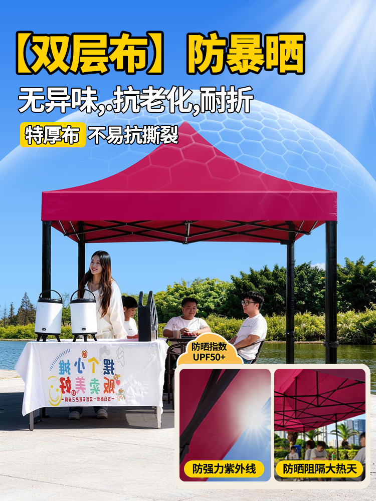 extra thick black hexagonal 2*2+3 sides protection cloth wine red [rainproof⭐anti-uv, lifetime warranty】