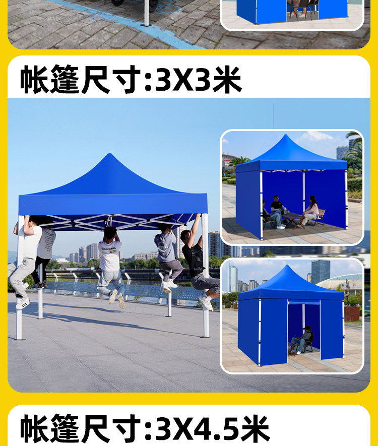 thickened automatic rack 3*4.5+3 sides protection cloth blue [3.3cm thick anti-strong wind⚡quick dispatch】