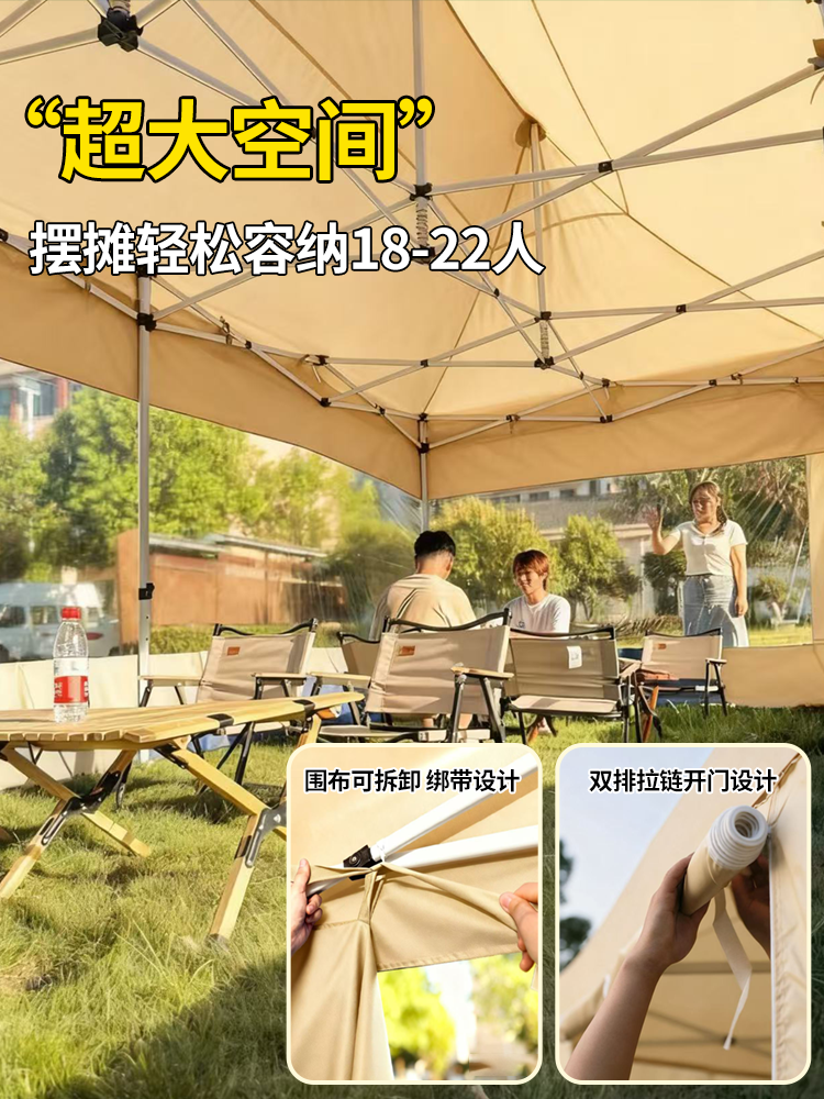 2*2 加厚 自动架卡其 +4面窗户 (四面透明围布备注)