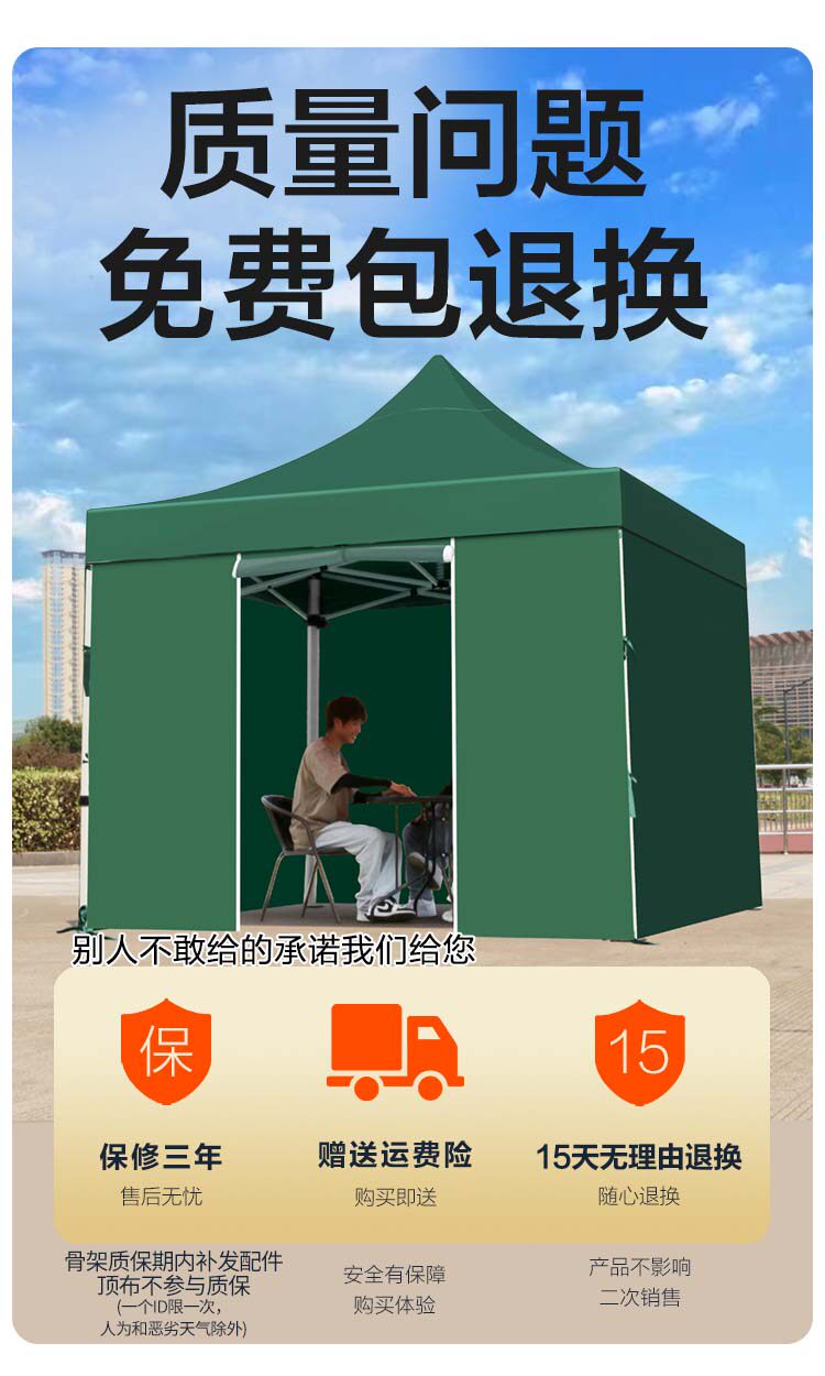 特厚黑六棱3*4.5墨绿色+4面窗户围布 ⭐管粗4cm 围布可拆卸