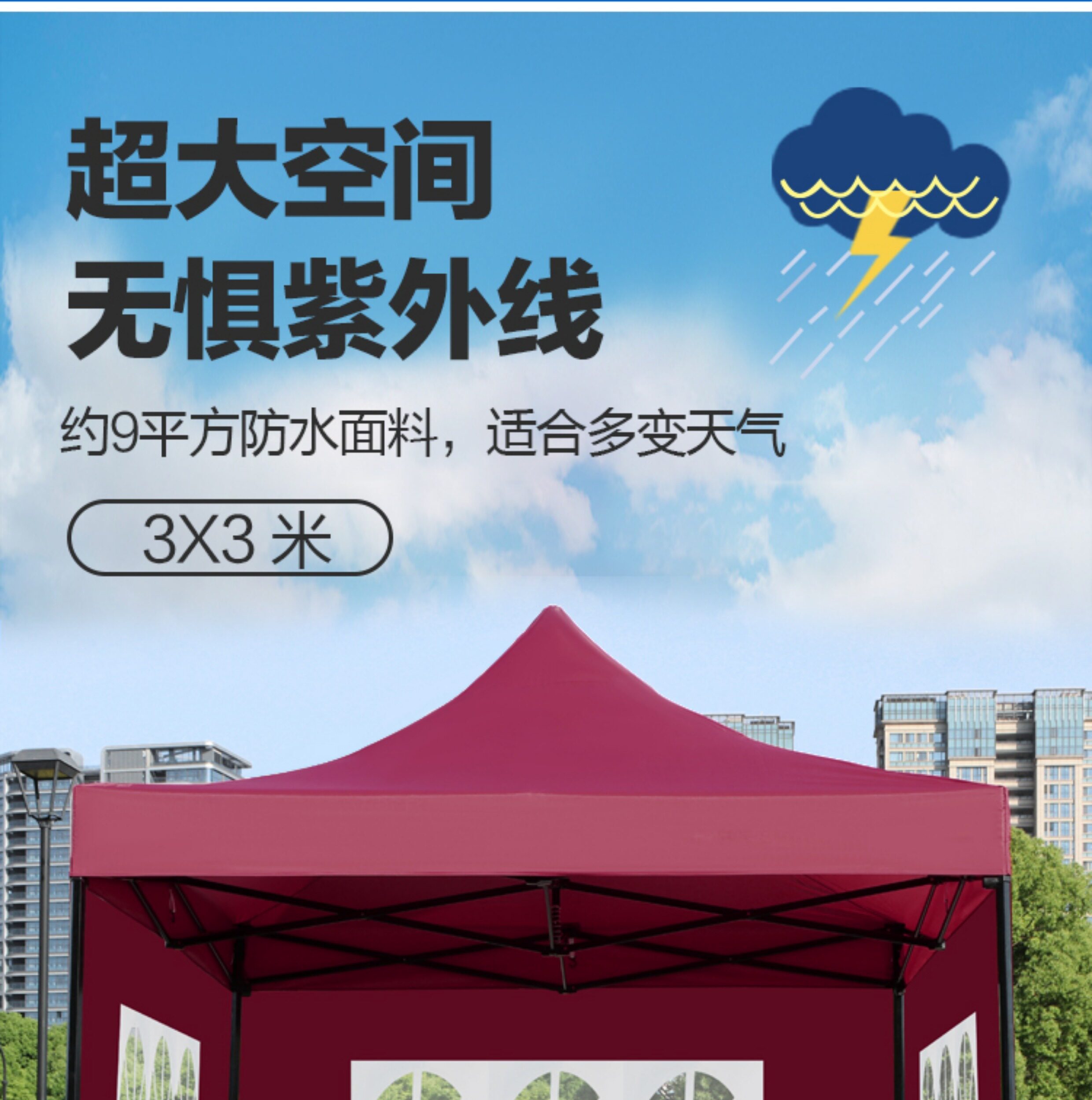 特厚黑六棱3*4.5酒红色+4面窗户围布 ⭐管粗4cm 围布可拆卸