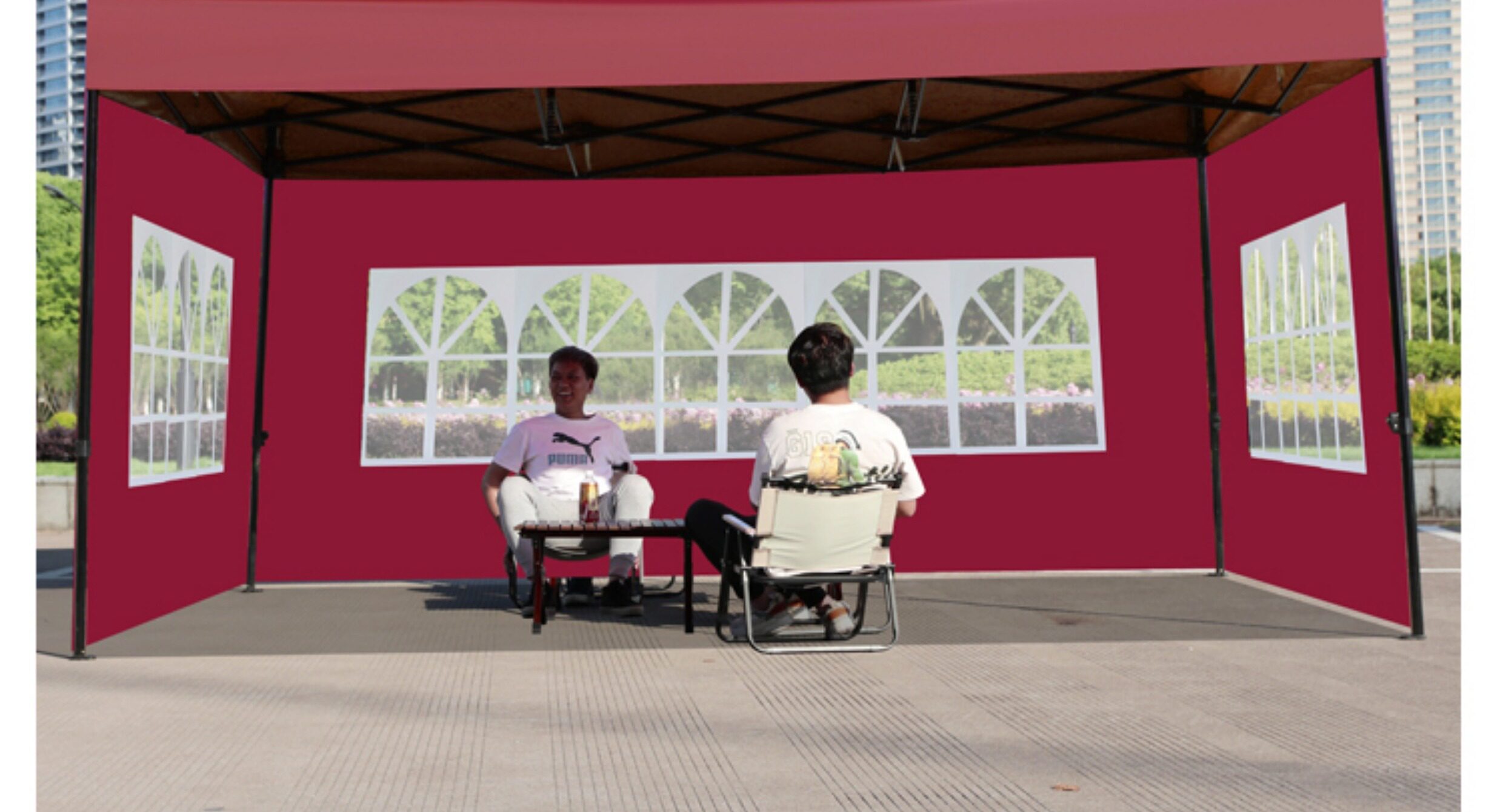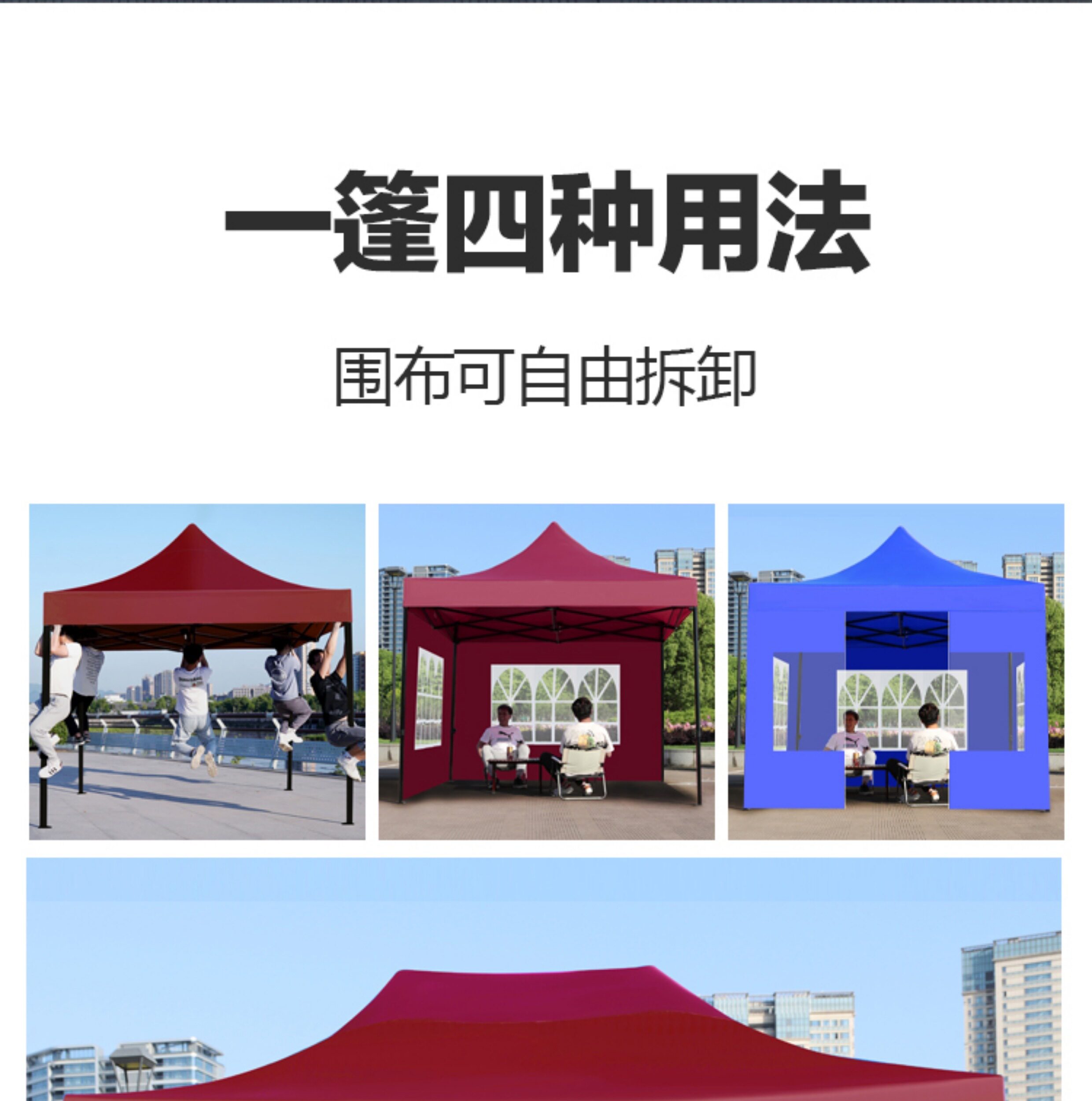 特厚黑六棱3*4酒红色+4面窗户围布 ⭐管粗4cm 围布可拆卸