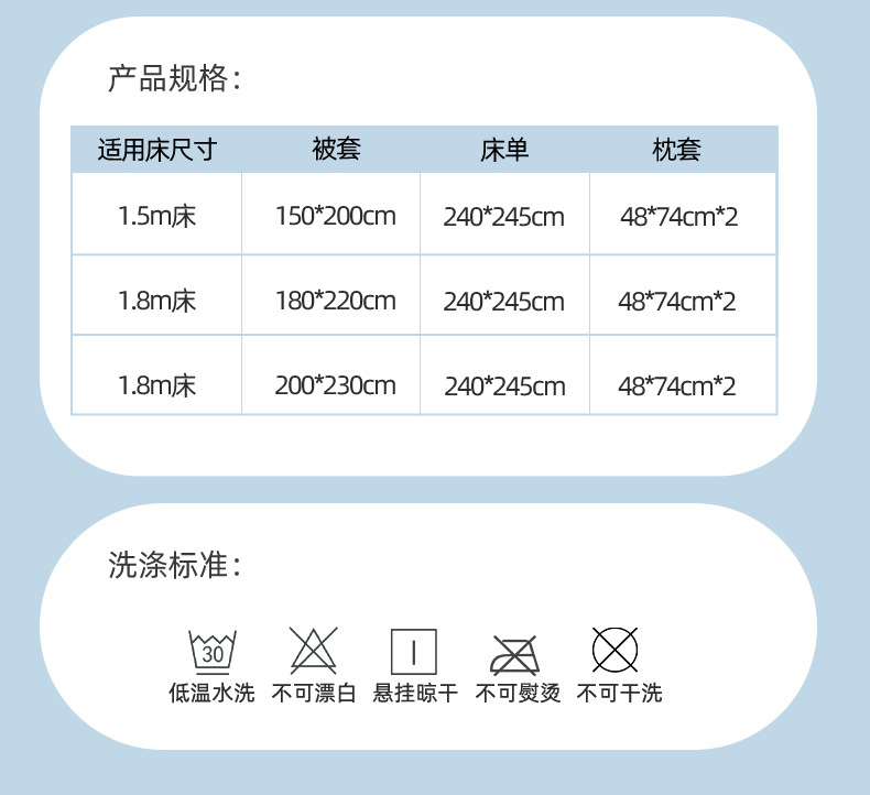 | summer quilt 200x230cm + bed sheet 240x245cm + one pair of pillowcases | CN¥ 172.5 |