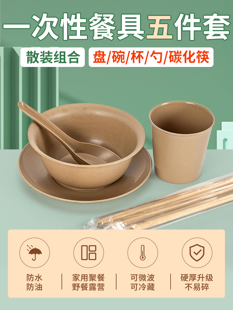 ★bulk 5-piece set: [plate/bowl/cup/spoon/carbonized chopsticks] 100 sets ☆