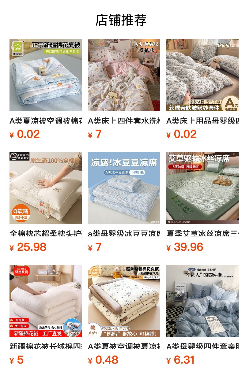 | summer quilt four-piece set [180×220cm summer quilt + bed sheet + one pair of pillowcases] | CN¥ 122.38 |