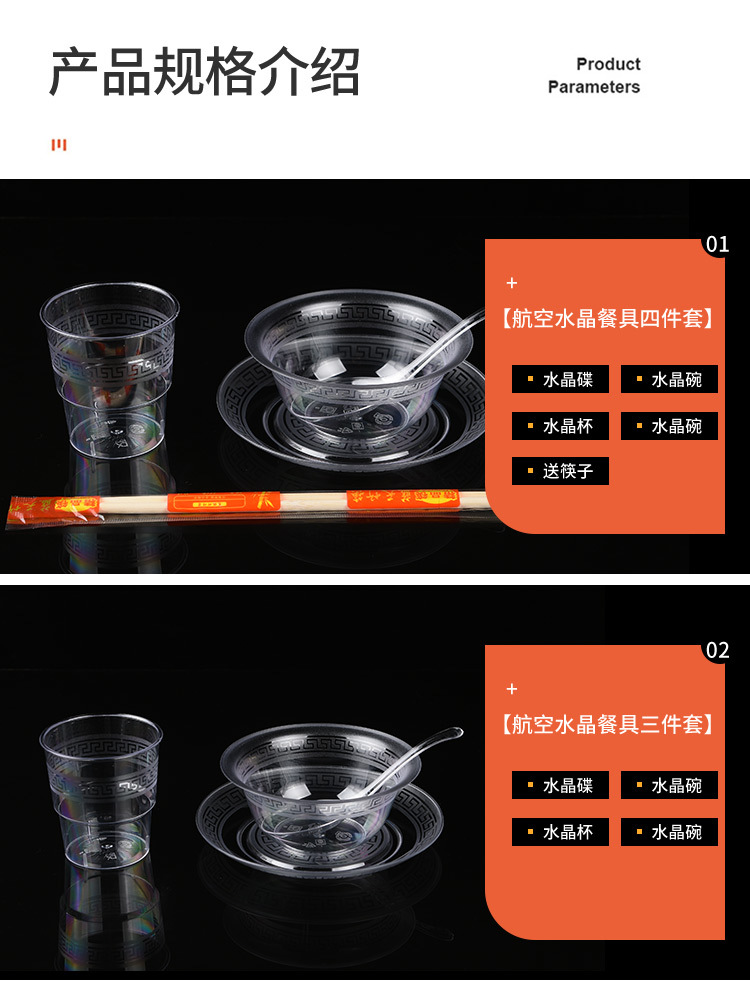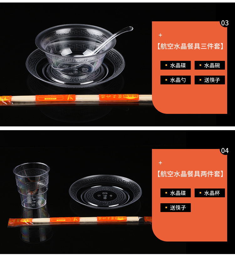 three-piece set [individually packaged chopsticks for free] 100 sets of dishes and cups (transparent) uicontrol